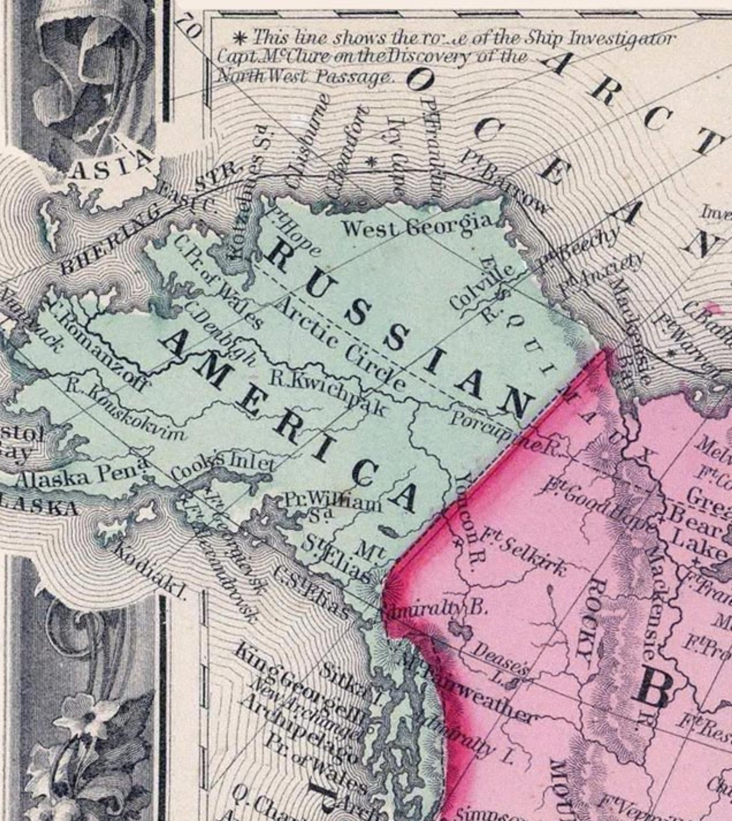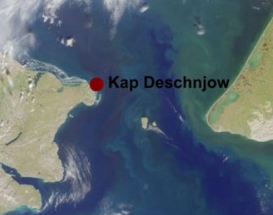 Kap Deschnjow liegt links, Kap Prince of Wales
