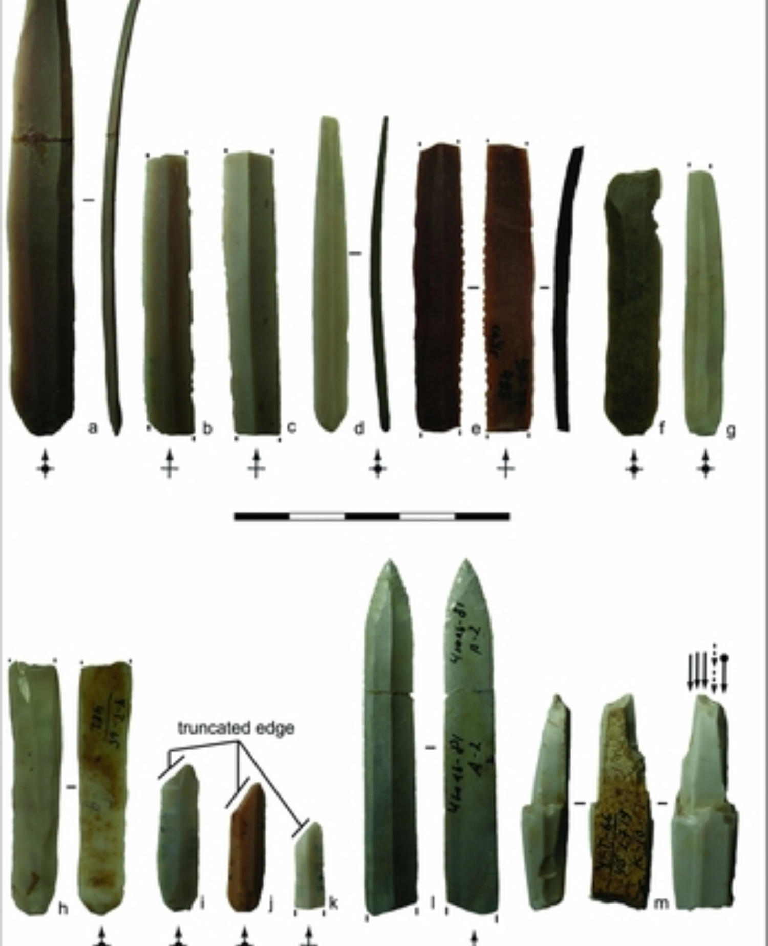 DasToolkitenthältkonische Mikroklingenkerne,facettenreiche Bohrer,Endschaber,großebifacialeAdzen und andere lithischeWerkzeugtypen.Abgesehenvon dengroßenbifacialenAdzensind diesemKomplexkeinebifacialen Werkzeugezugeordnet.Einigeder neuenWerkzeugformen,diein diesemZeitraumauftreten,sind auchindennachfolgenden neolithischenKomplexenvor-handen.Diehierdiskutiertenmesol-ithischenArtefaktewurdenallevon der Ust-Timpton I-Stelle geborgen.